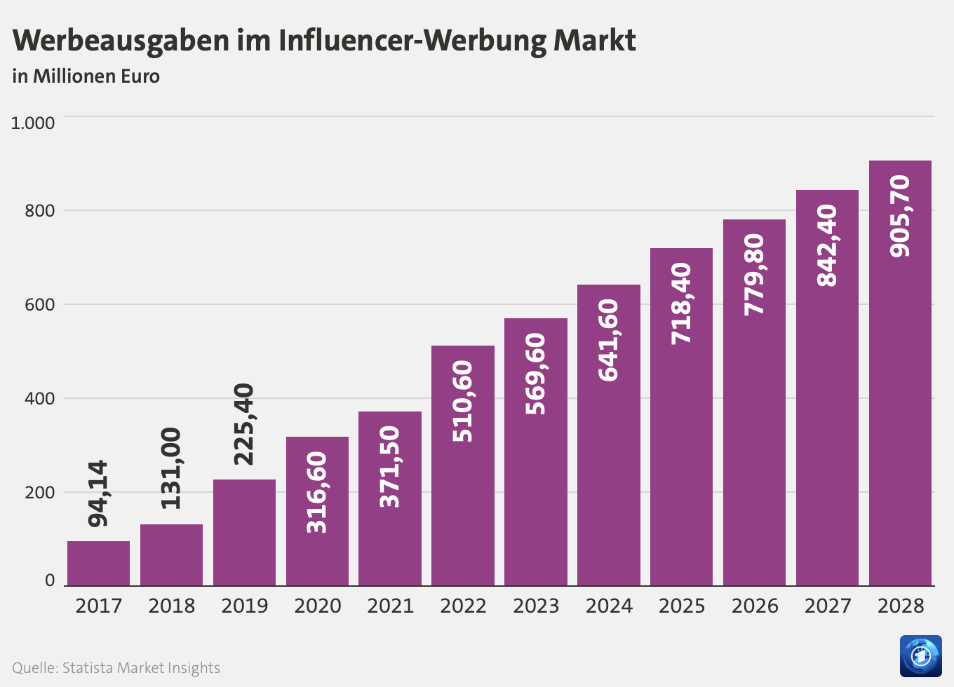 Unternehmen wissen das und schichten ihre Marketingbudgets um: Während sie 2017 noch bescheidene 94 Millionen Euro für Influencer Marketing ausgaben, waren es 2023 bereits satte 570 Millionen Euro. Schon in vier Jahren, so die Forscher, könnte der Markt an der magischen Eine-Milliarde-Umsatz-Grenze kratzen.